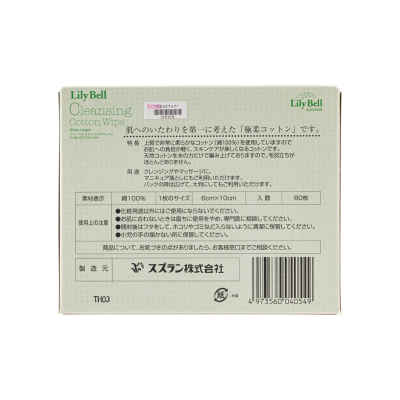 Suzuran Cleansing Cotton Wipe Extra Large 80Piece