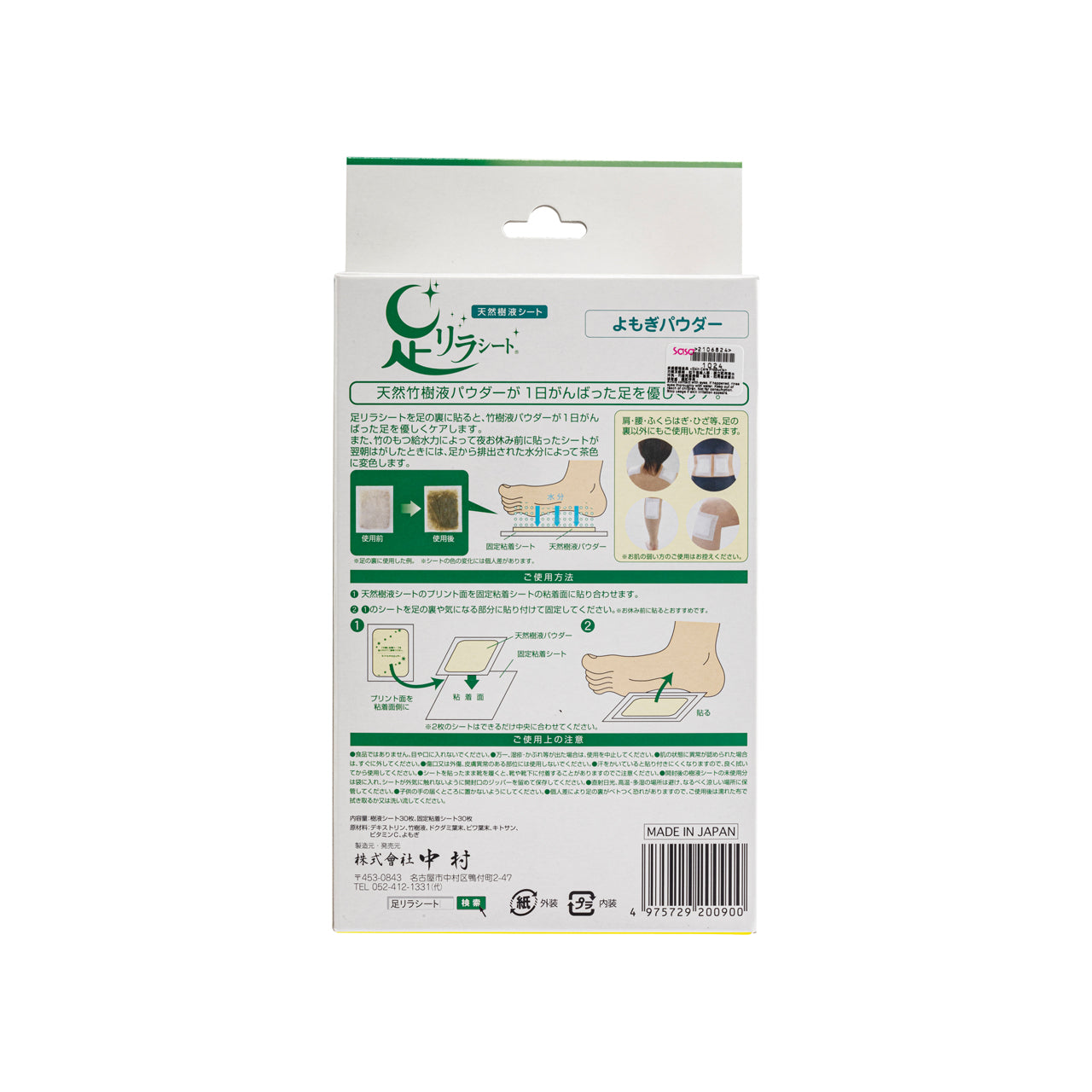 Use after clearing your feet. Tear off the sticker of the larger side and stick the side with words of the powder pack in the middle of the tape. Then, tear off the remaining stickers and press it firmly. Rinse your feet after using.