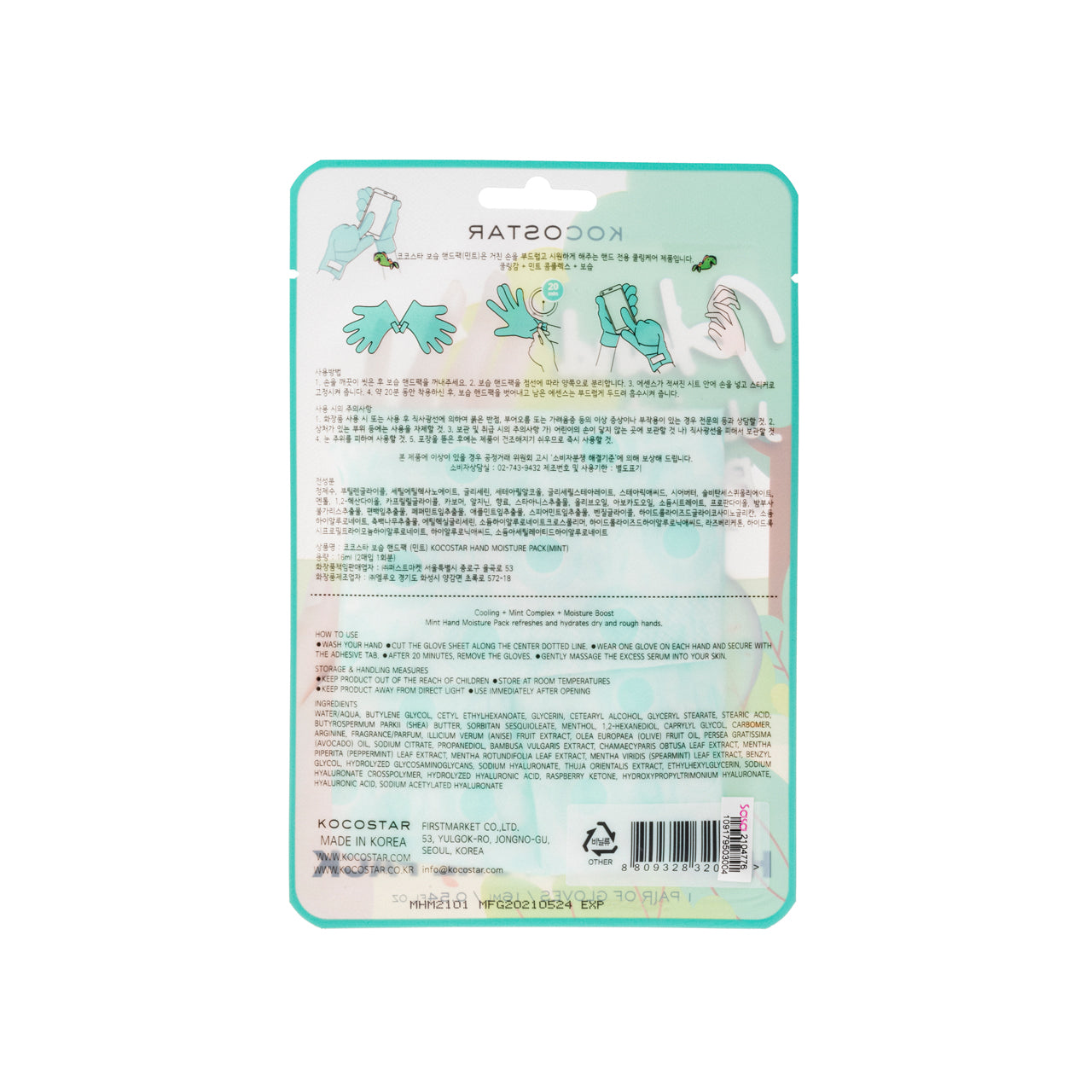 Kocostar Hand Moisture Pack - Mint 1Pair