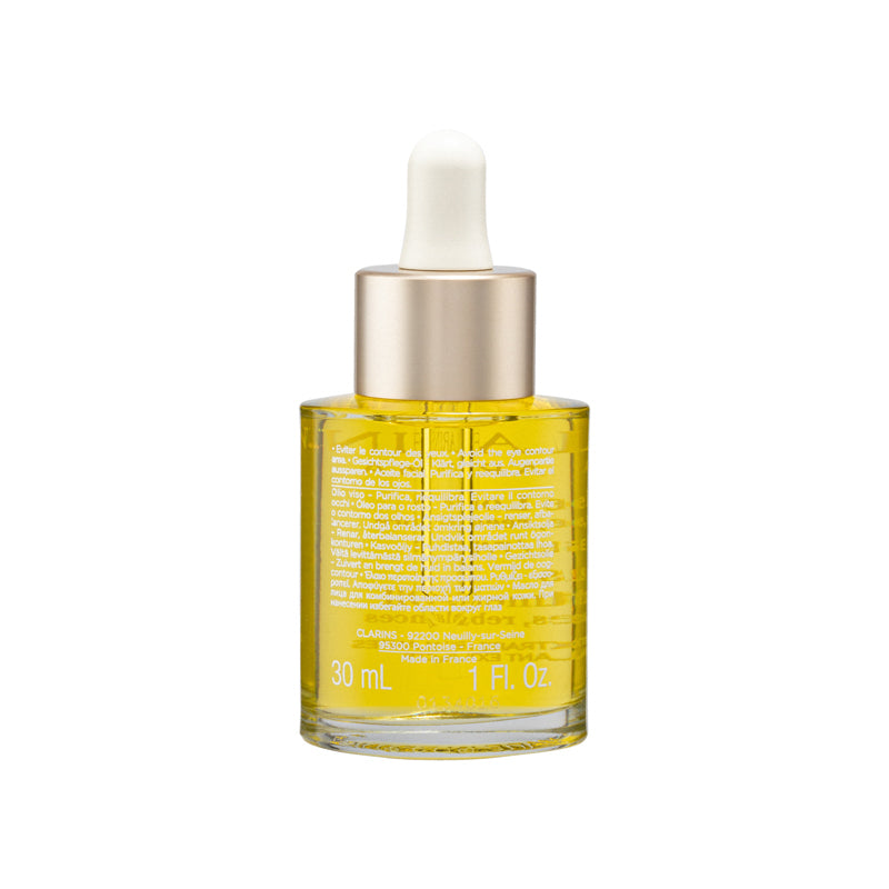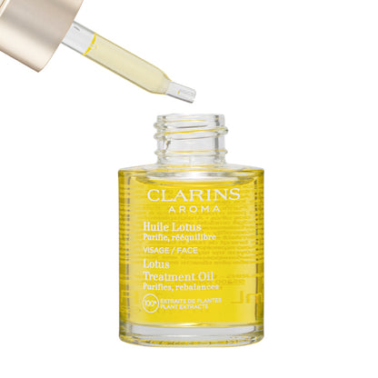 • Made from precious plant extracts, this face oil is Clarins’ exclusive blend of Lotus, Rosemary, Geranium and Hazelnut oil, which purify the skin, tighten pores and refine skin texture.