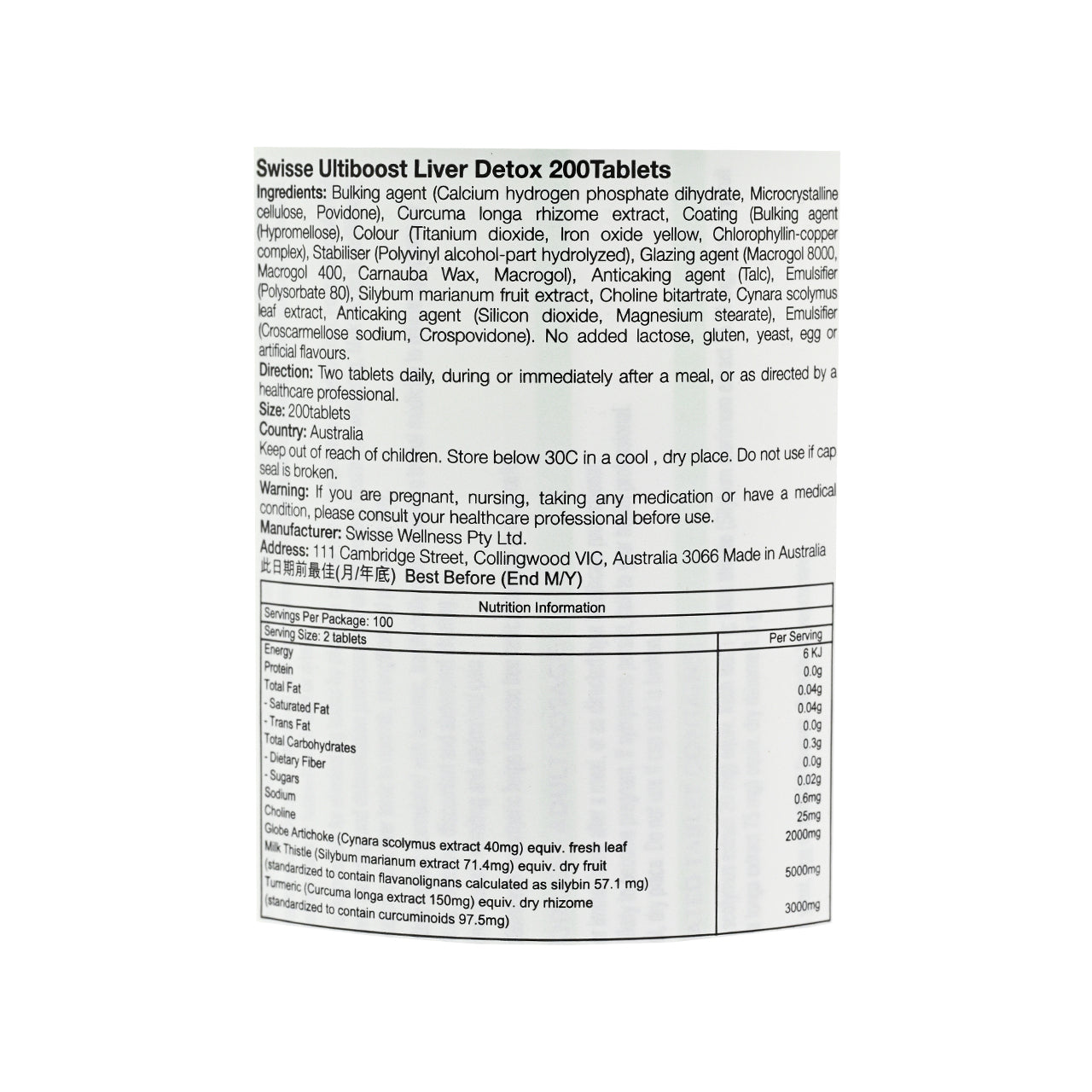 Swisse Ultiboost Liver Detox Supplement (200 Tablets)