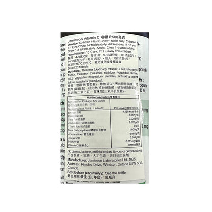 Jamieson C Vitamin C Chewable 500mg (Orange) (120 tablets)