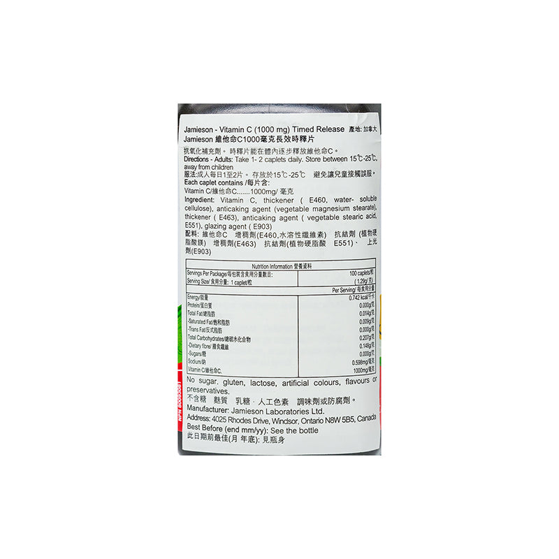 Jamieson Timed Release C 1000Mg 100 Capsules
