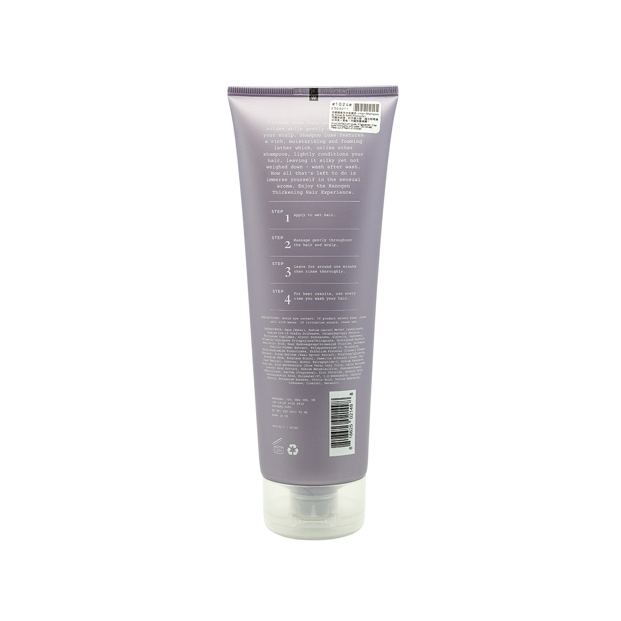 NANOGEN Shampoo Luxe for Women gently cleanses and deeply nourishes hair strands, revitalizes and adds volume, making hair stronger. It combines 7 benefits in one formula: cleansing, moisturizing, caring, strengthening, balancing scalp environment, anti-pollution, and optimizing hair fiber.