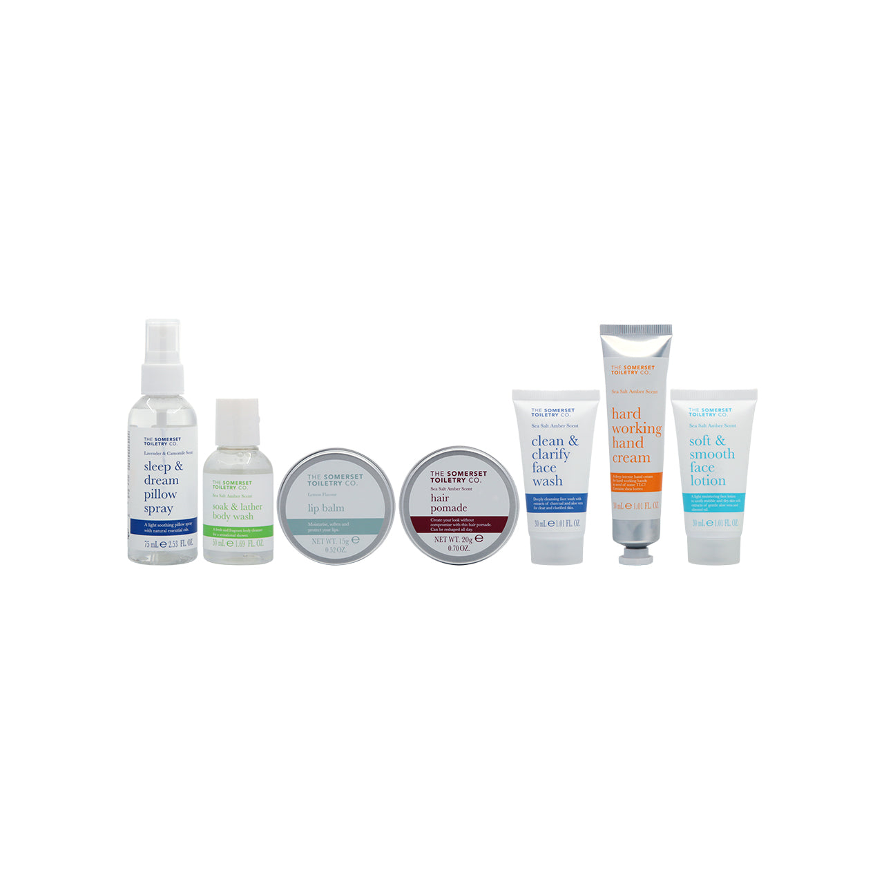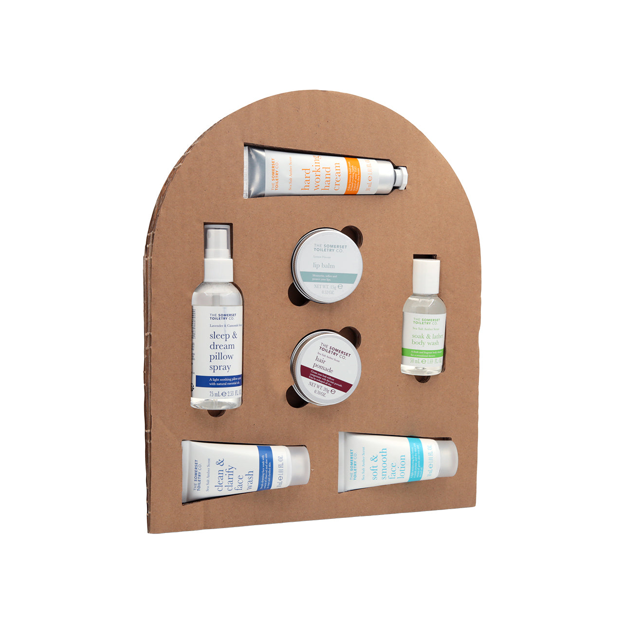 A Christmas gift set that includes 7 products: pillow spray, face wash, face lotion, hand cream, lip balm, body wash, and hair pomade. The set comes in a decorative holiday calendar packaging, adding a festive touch and a sense of ritual.