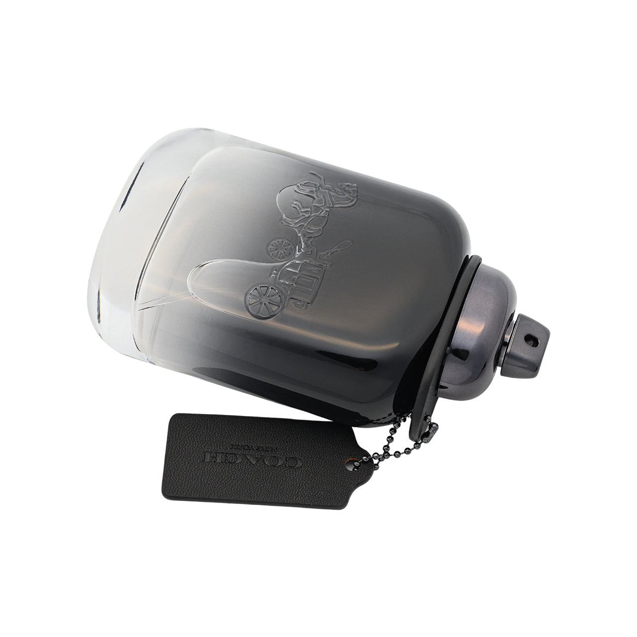 • Dark grey gradient perfume bottle paired with a gunmetal-coloured turnlock and the iconic carriage print embossed is both modern and vintage.