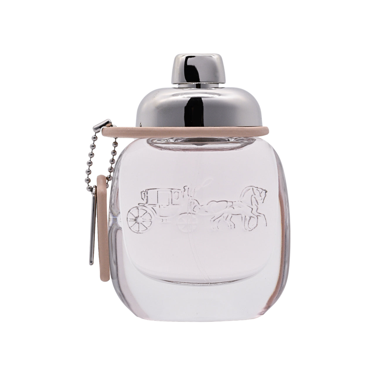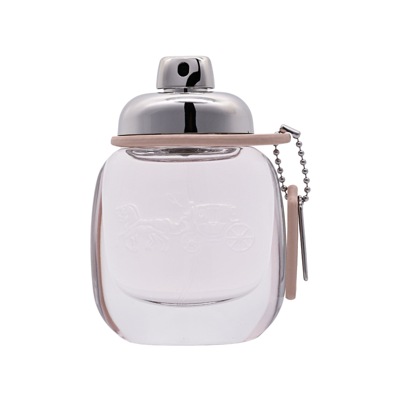 • Cute oval-shaped bottles penetrates light pink colour and is engraved with Coach’s signature horse and carriage.