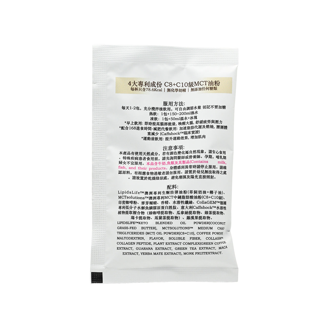 •Includes MCTsolutionsTM patented MCT oil powder (C8+C10), which helps rapidly increase ketone bodies, providing energy, boosting vitality, reducing energy intake, and aiding in weight maintenance.