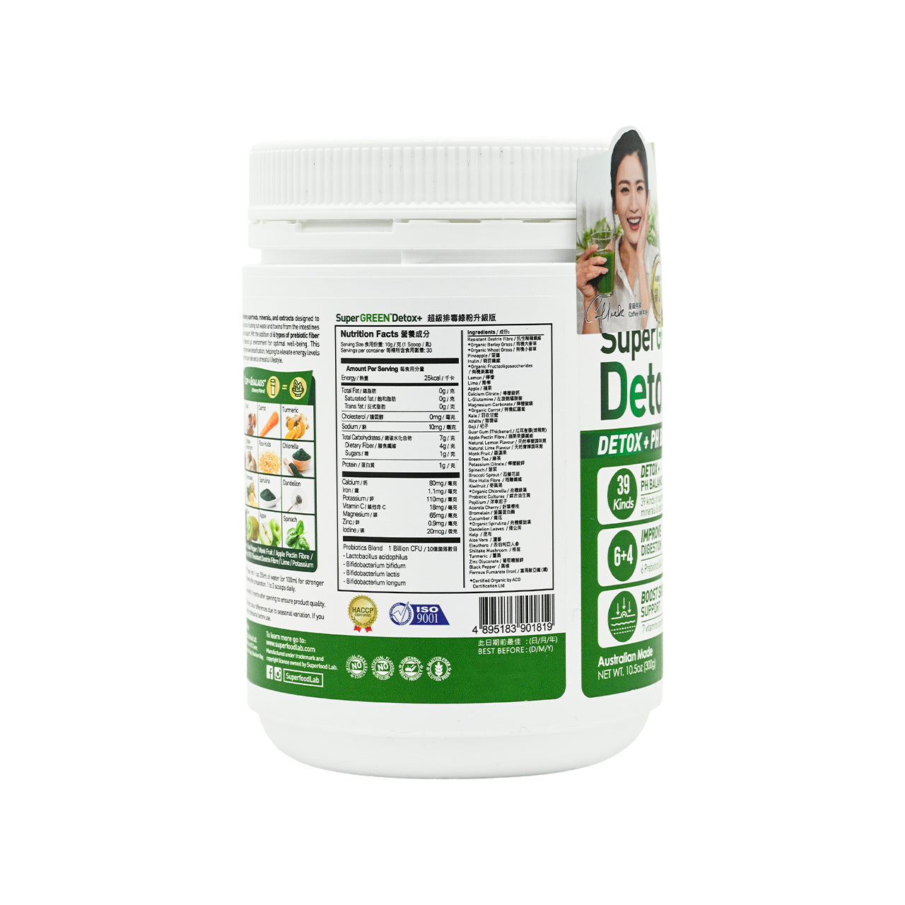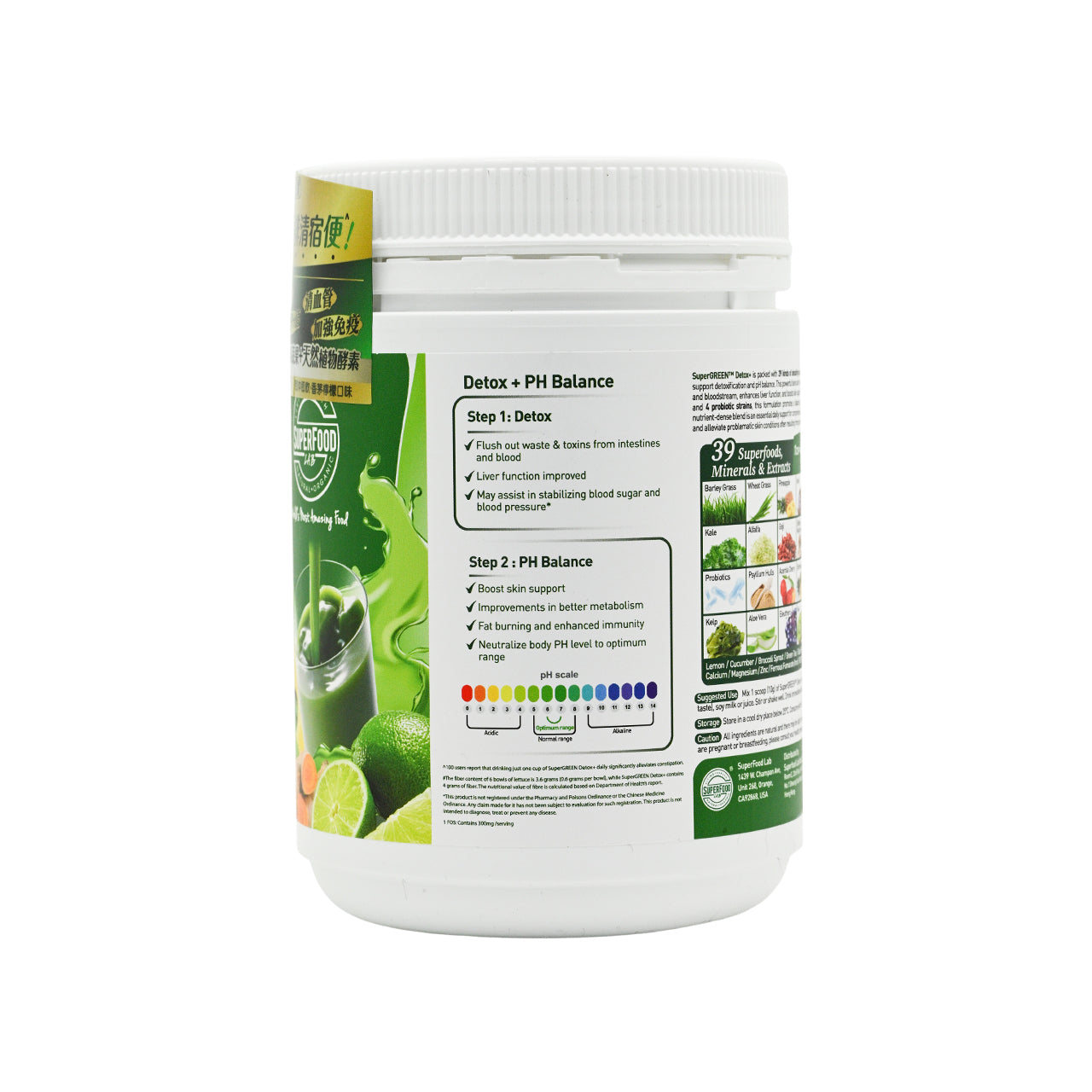 •36 detoxifying ingredients: Helps cleanse the intestines, neutralize stomach acid, balance pH levels, and promote fat burning.
