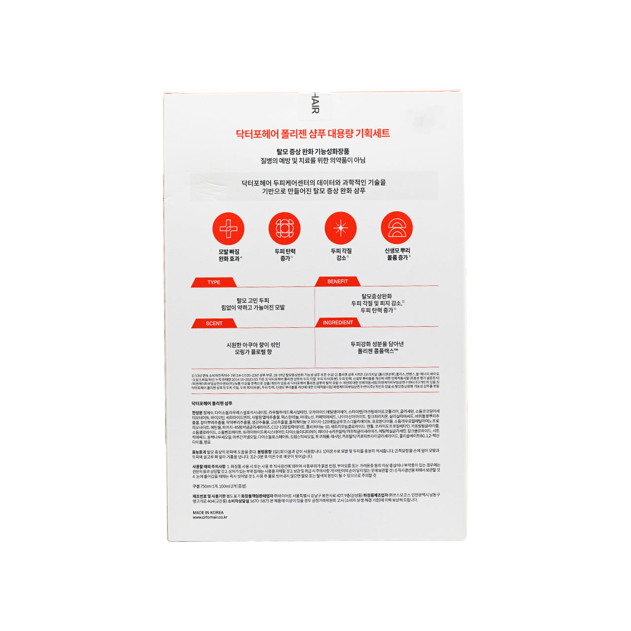 Specially formulated with Folligen Complex™, combined with various hair care ingredients, gently cleanses the hair while enhancing hair flexibility, making the hair strong, resilient, and voluminous.