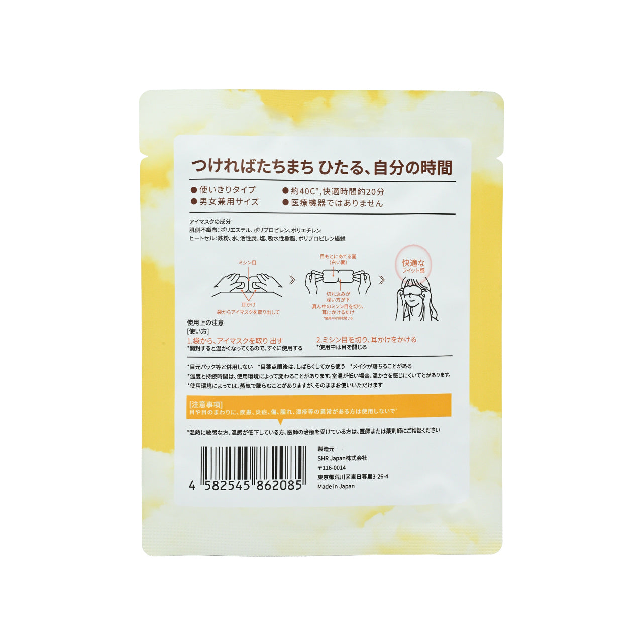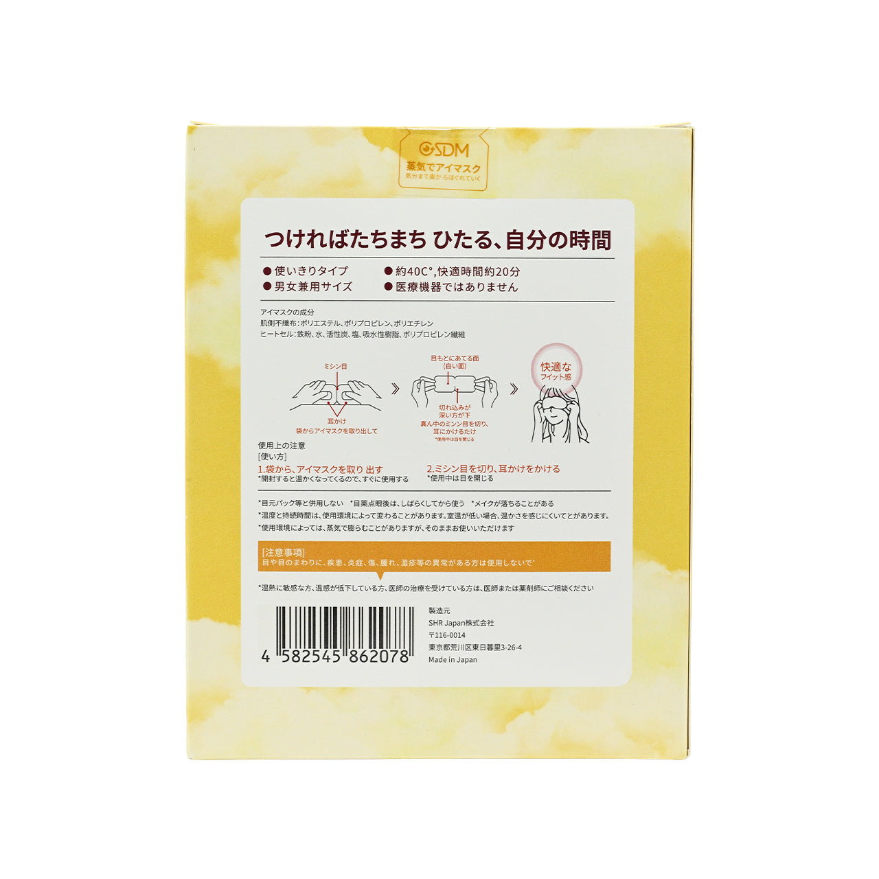 • Releases a gentle warm steam at approximately 40°C, providing a 20-minute steam heat compress experience to soothe the eyes.