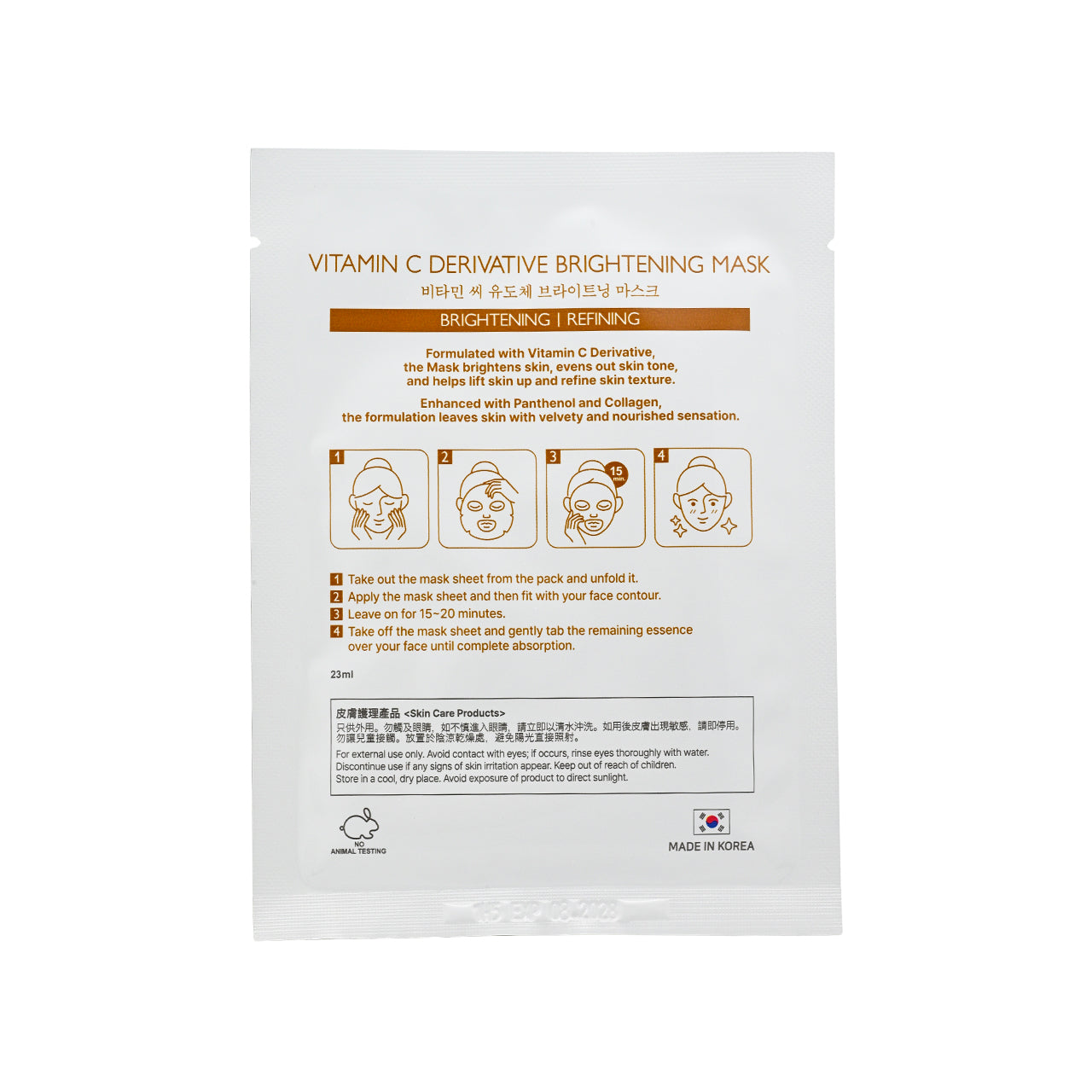 After cleansing and toning, remove the mask and gently apply it to the face. Relax and enjoy for 15-20 minutes. If there is any remaining essence, lightly massage with fingertips to help absorption.